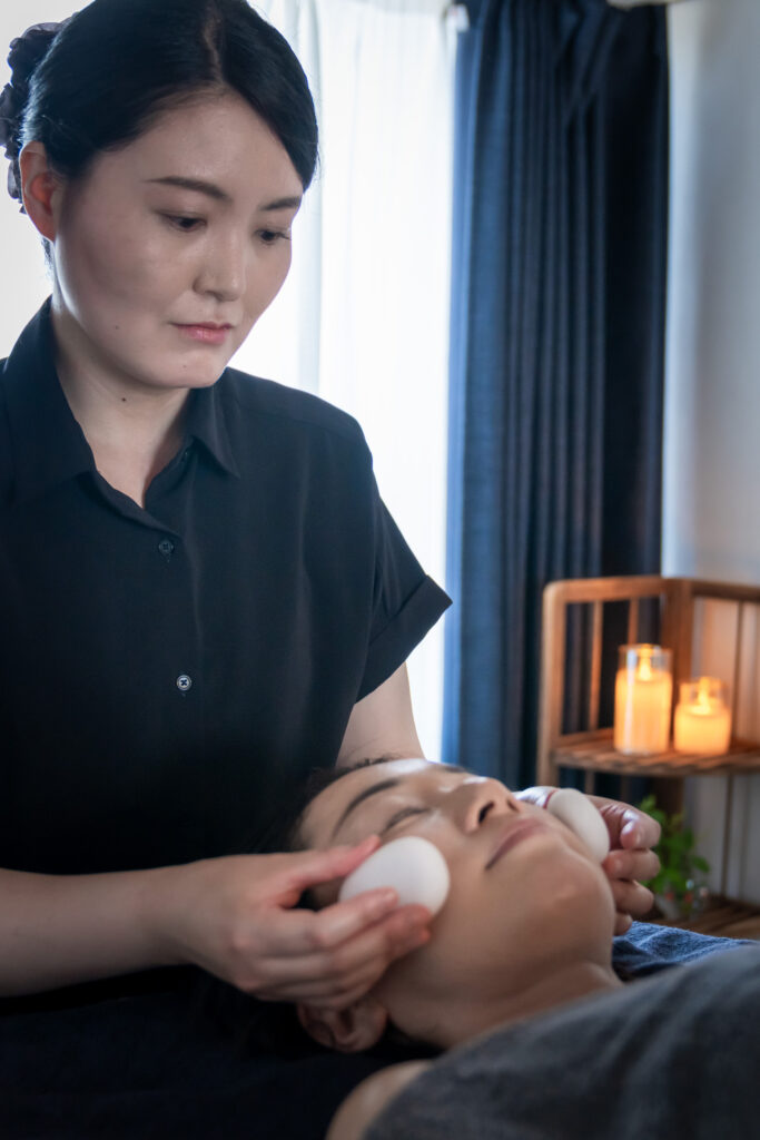 温かい石は、ボディのホットストーンコースでも使っている玄武岩。ただしお顔に使うのはボディの物より少し小ぶりです。